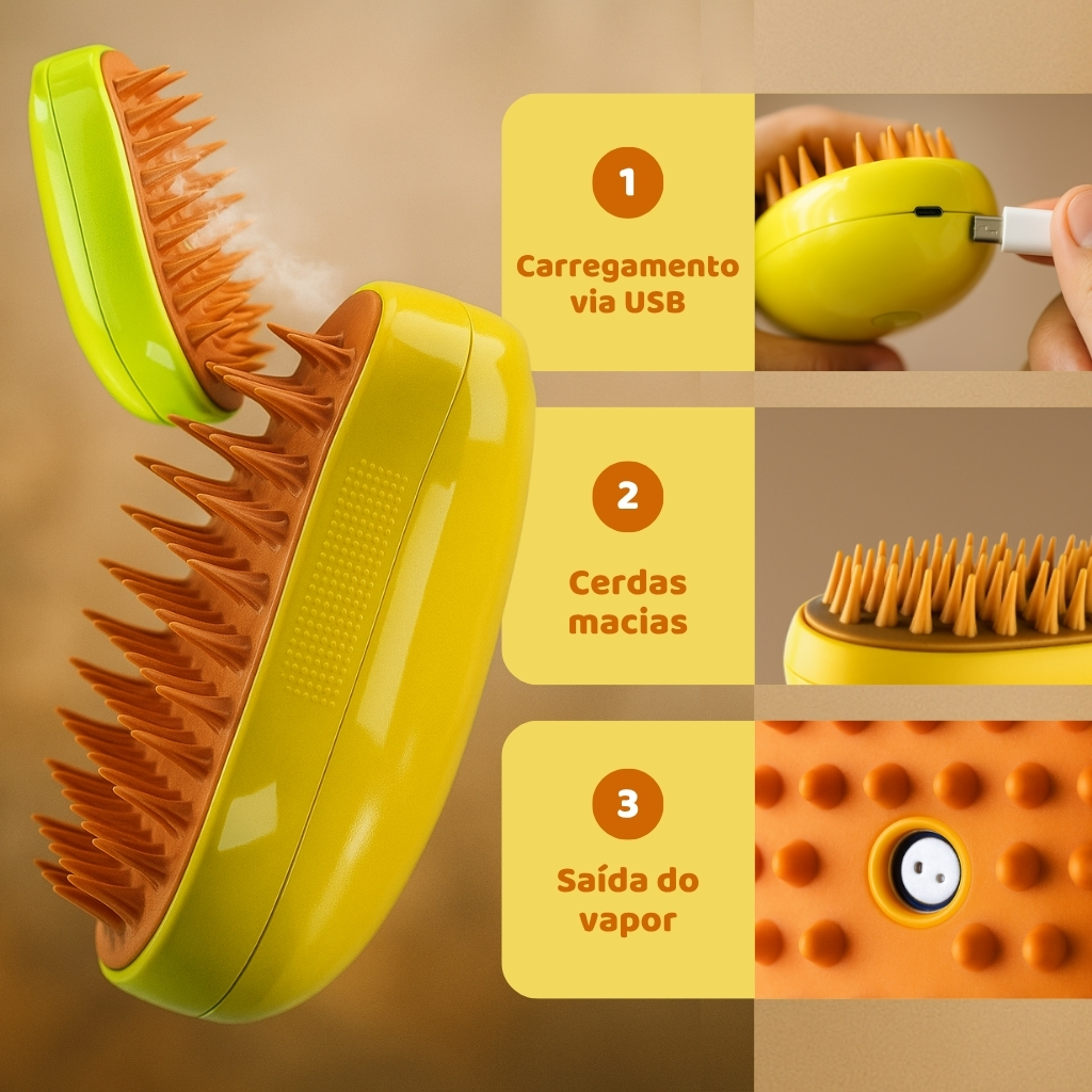 👉 Seu pet merece o melhor! Mantenha a pelagem do seu cão e gato sempre limpa e brilhante - peça já a sua Escova a Vapor 3 em 1 - Removedor de Pelos, Massageador e Vaporizador e proporcione uma pelagem limpa, macia e saudável para o seu pet.